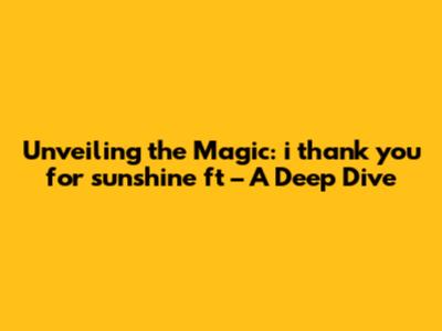 Unveiling The Magic: 'i Thank You For Sunshine Ft' – A Deep Dive